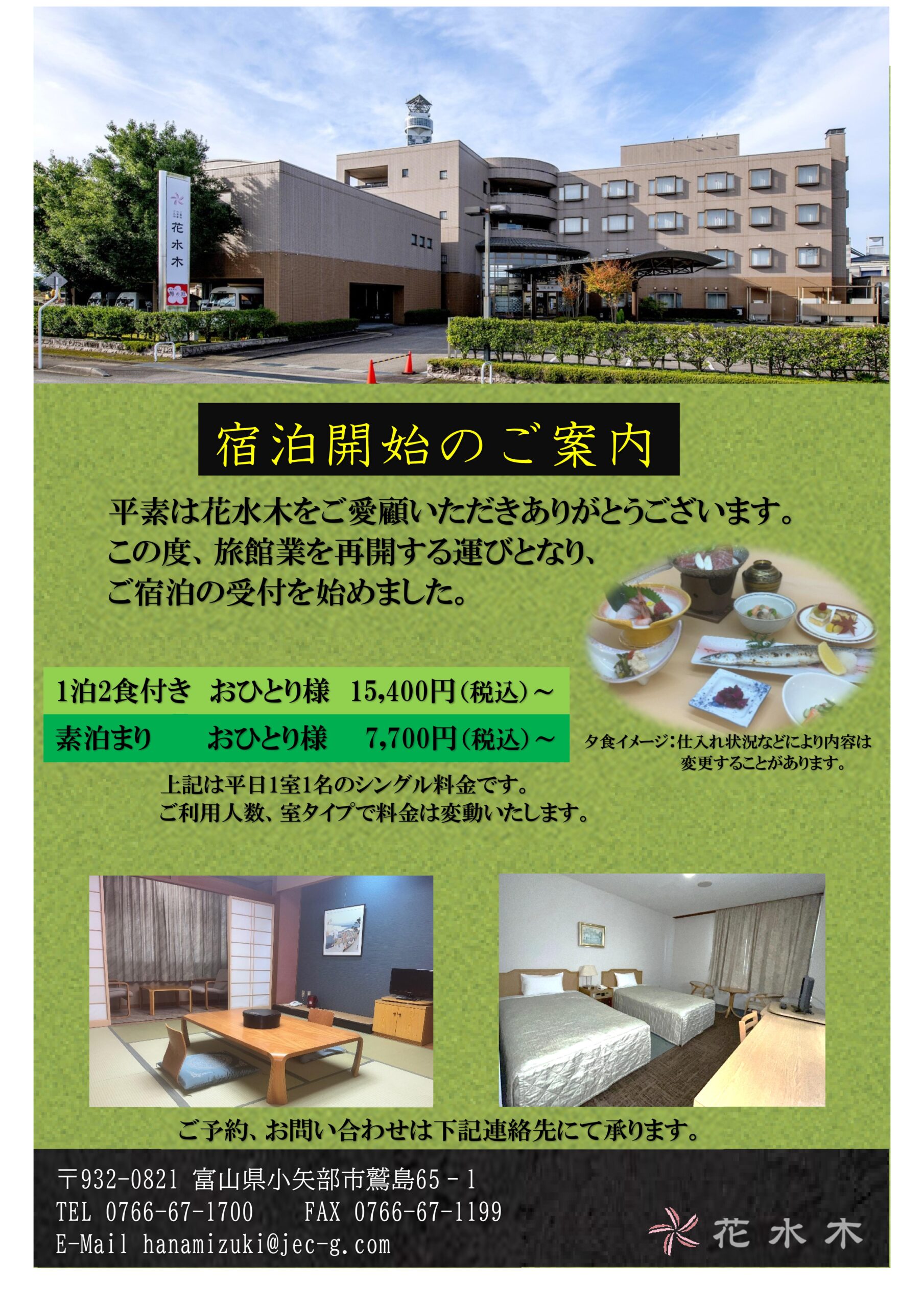 宿泊営業開始のお知らせ