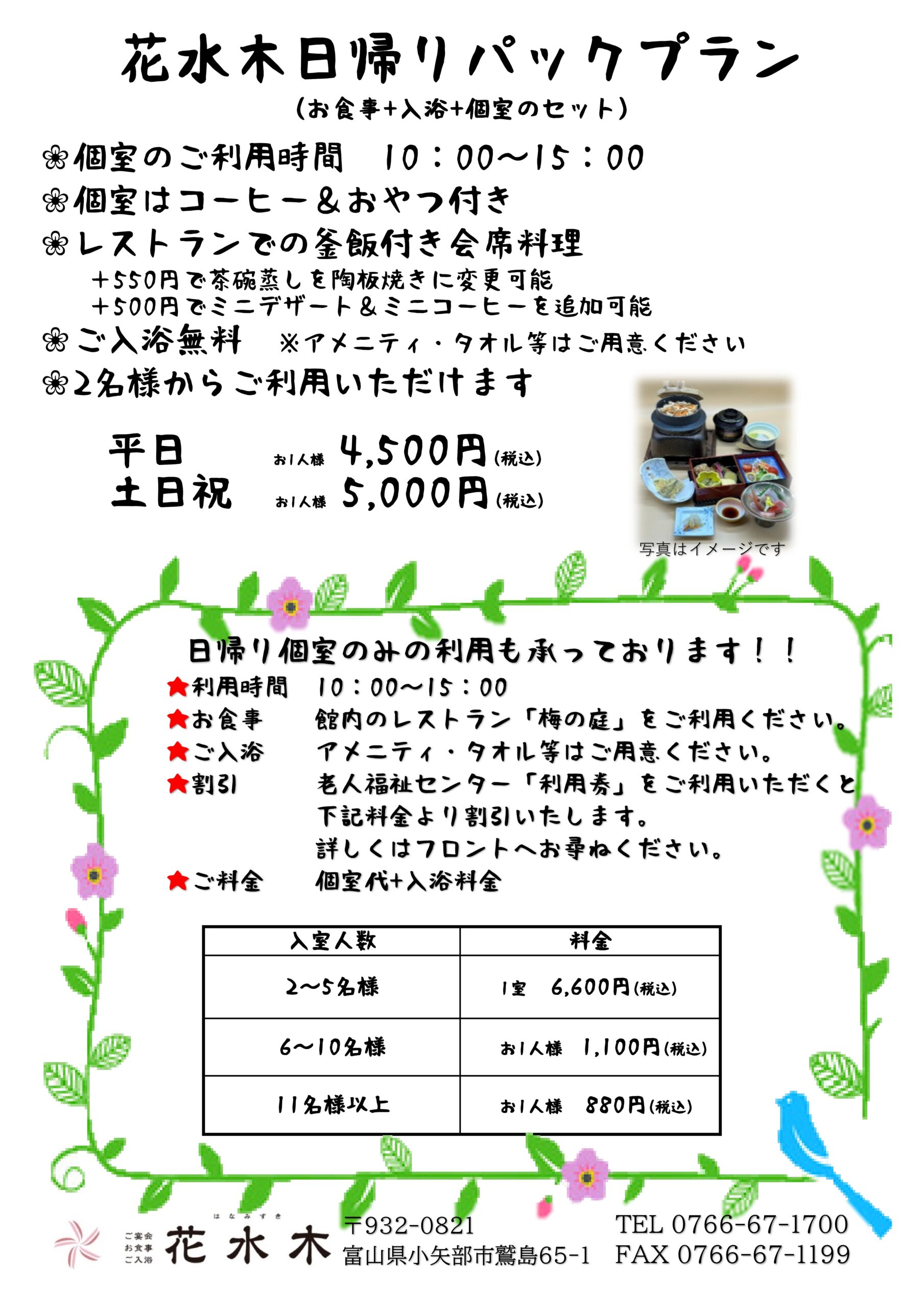 花水木日帰りパックプラン
