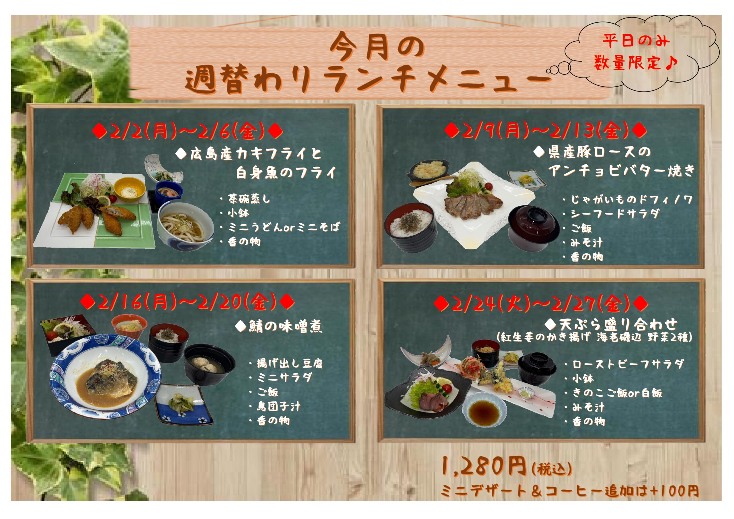 価格: 1,280円(税込) ミニデザート&コーヒー付きは+100円