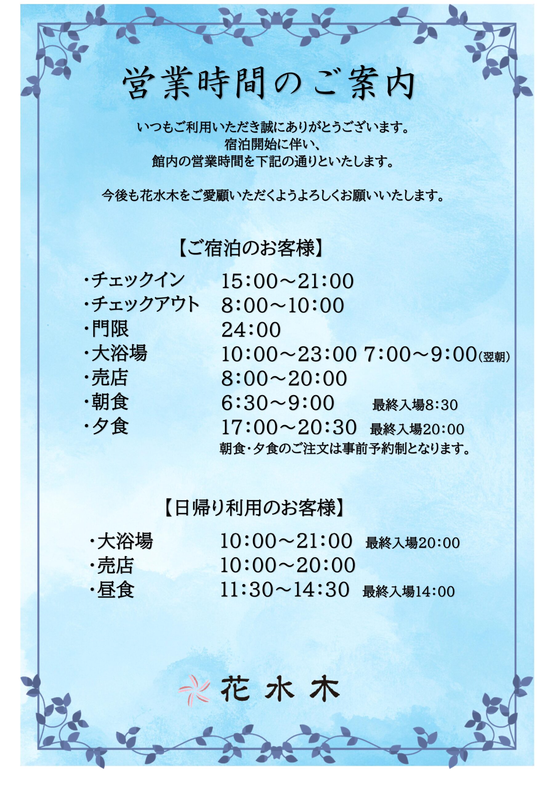 2月19日(木)より大浴場の利用時間を下記の通りといたします。